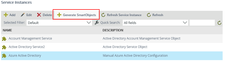 - Optionally configure the AAD Service Instance and generate SmartObjects.