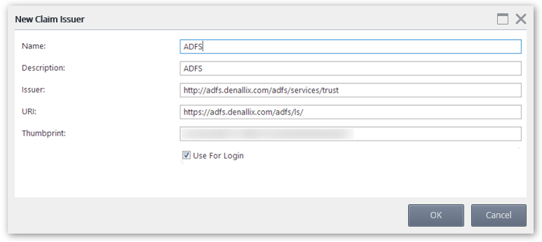 Get-AdfsCertificate "Token-Signing" | Select-Object CertificateType, Thumbprint - Check the Use for Login check box and click OK to add the AD FS issuer.