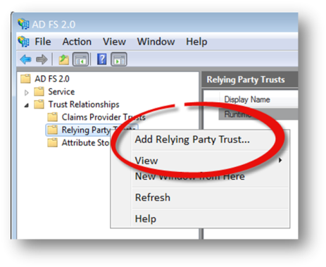 - Right-click on the Relying Party Trusts node and select Add Relying Party Trust…