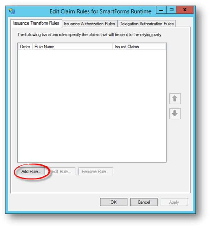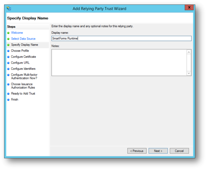 - Configure the product as a Relying Party Trust in AD FS for each smartforms site