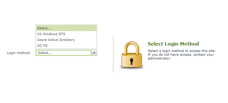 If AD FS is the only authentication configured in the Realm to Issuer mapping then you should be redirected to the AD FS log in screen. If there are other authentication modes configured then you will see a page with a drop down that lets you select the authentication method that you want to use. Authentication that you have previously been using to access your smartforms sites will likely be cached by your browser. To enable you to login using AD FS you will first need to clear your browser cache.