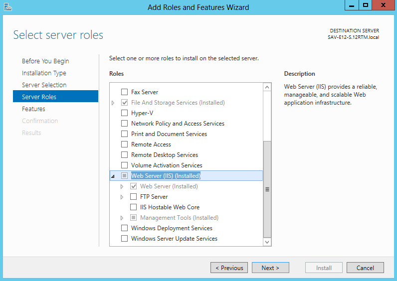 4. In the Server Roles section, select and expand Web Server.