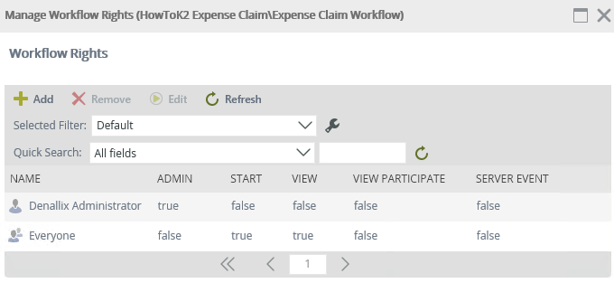 - Assign "everyone" start and view rights to the Expense Claim Workflow.