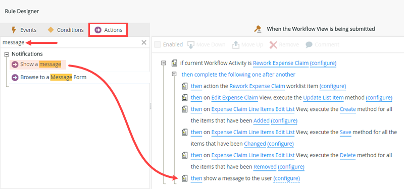 - Edit the Edit Expense Claim form. Edit the When the Workflow View is being submitted rule for the Workflow Task state.