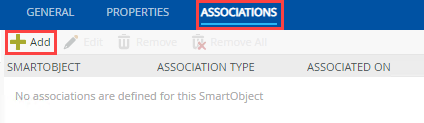 - Click the ASSOCIATIONS tab in the toolbar. You associate the Expense Claim Line Item (Smartbox) SmartObject with the Expense Claim SmartObject (generated from the SharePoint Expense Claim list).