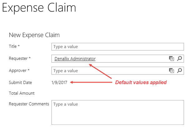 - If you want to see the impact of the changes you just made, navigate back to the Expense Claim list and click New. The "new" form contains the "new" view, so you should see the following:
