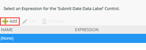 - Next you set the Submit Date’s value so that it defaults to the current date. Select the Submit Date Data Label, then add an Expression.