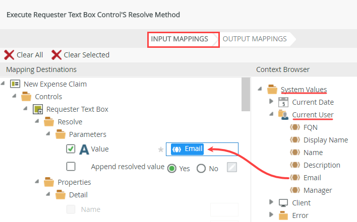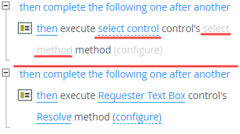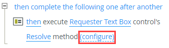 - Click the select control link and select Requester Text Box. Click the select method link and select Resolve.