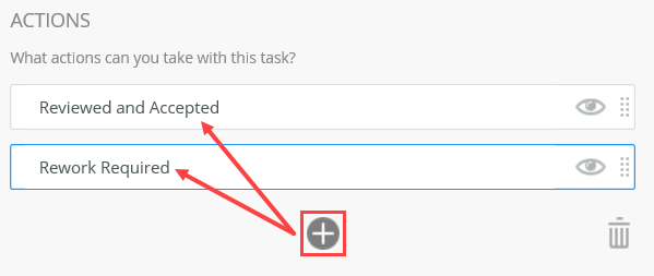 Please review the attached document and indicate your decision. - Click the Add (+) icon under the ACTIONS heading to add the task actions: