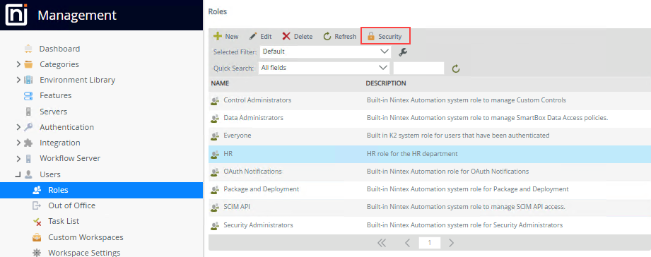 By default, three system roles are created during installation, but you can create as many additional ones as needed. Note that the default Roles cannot be deleted.