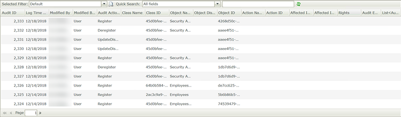 The Security Audit SmartObject allows a member of the Security Administrators role to execute the SmartObject and generate an audit log of all authorization framework security changes in your environment. For more information, see the Security Audit SmartObject topic.