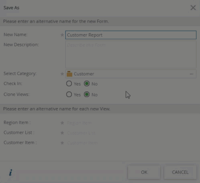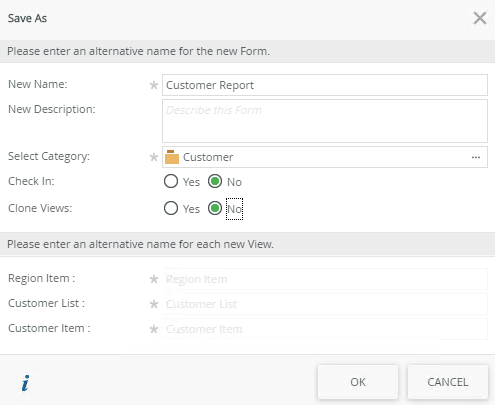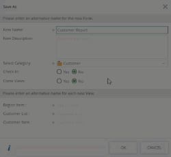 Select Yes if duplicate views are to be created in the same category, and type a new name for each of the new views. Alternatively select a new category. |