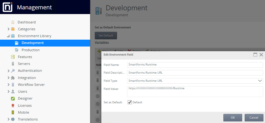- If you use a "Runtime Only" license, only the Run option is available. To identify the type of license, go to Management Site > Licenses and check what type of license is used for SmartForms.