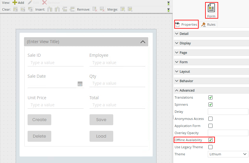 If you do not enable the Offline Availability form property, the form is only available when the Workspace (Mobile) app is online.