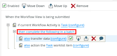 - If necessary, edit the rules that execute when the form is submitted (for example the When the Workflow View is being submitted rule), and change the execution type to then complete the following in a batch. See Rules, Events and Actions and Considerations for information about using rules with offline forms.