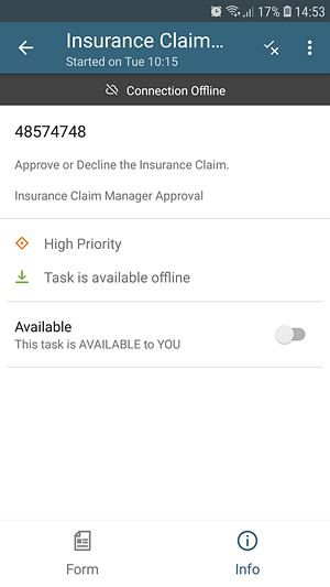 - Disable network connectivity for your device (e.g. set the device to "airplane mode"), and notice that you can still open and action the form.