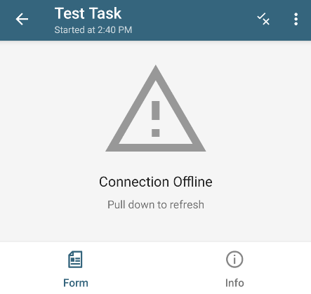 - If the device goes offline before the download is complete, the form on the task is not available and an offline message is shown when you try to access the form.
