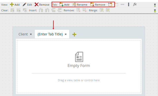 Click the Add button in the Tab toolbar of the Form Designer to create a new tab. Tabs are part of the form and for that reason inherit the styling of the form.