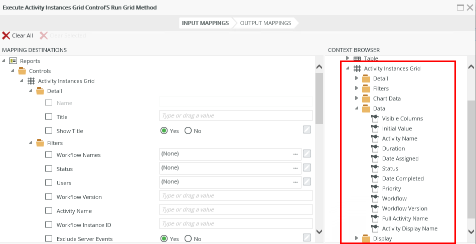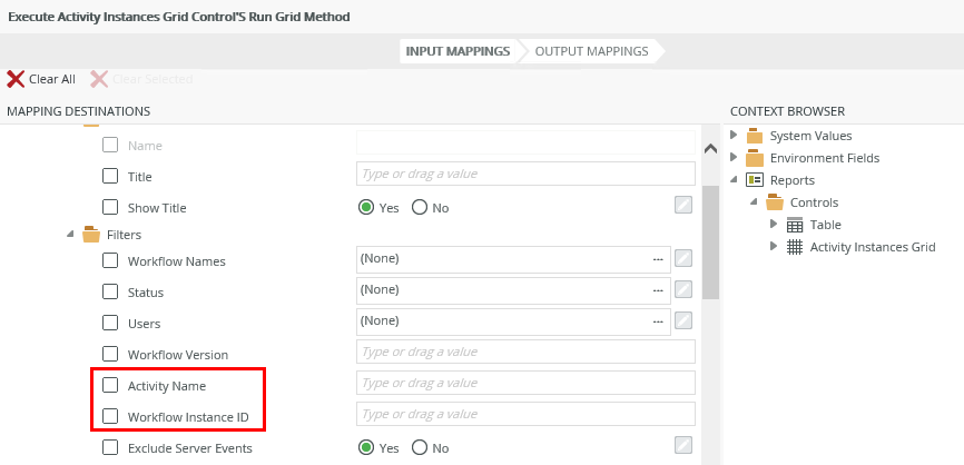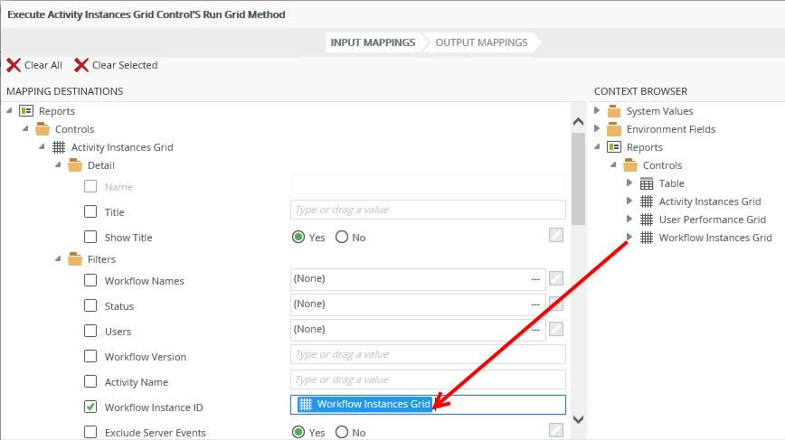 Configuration: Map the Workflow Instances Grid to the Workflow Instance ID of the Activity Instances Grid