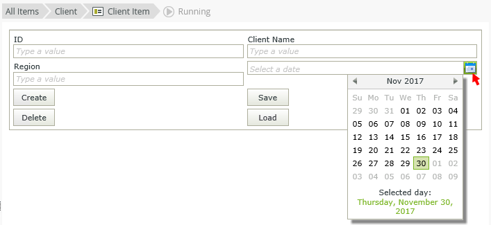, Time or Date and Time . These settings apply when you click on the Calendar picker in runtime. |