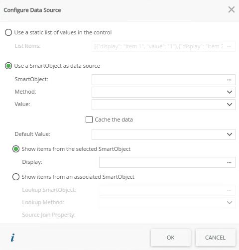 | SmartObject | Select this option if you want to use a SmartObject as the data source. |