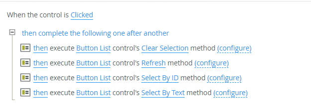 - Set a control’s properties: You can configure the settable properties of the control with this action