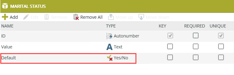 - Create a SmartObject called Marital Status with a Default property of type Yes/No to use as the default value.