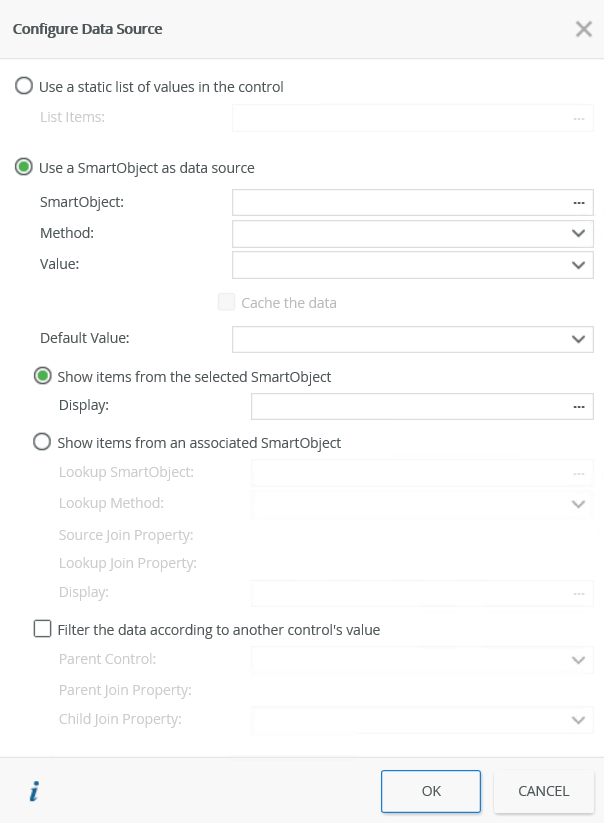| Show items from the selected SmartObject | Select this option if you want to show items from the parent SmartObject in the control. |