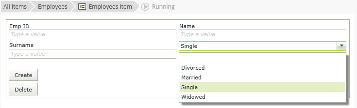- Create another view to use the Marital Status SmartObject, for example an Employees Item view.