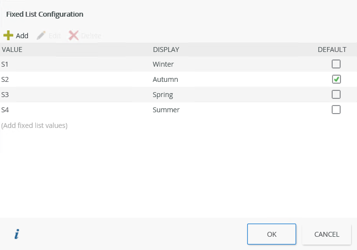 The image below shows the display values with Autumn as the default value.