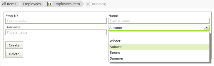 When the control is unbound, you can configure static values for both fields. You can use the value of the control with conditional logic, for example, to show/hide other controls according to the selection in the list.