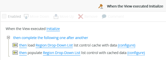When you select the Cache the data option, the following two actions are added to the When the View executed Initialize rule event: