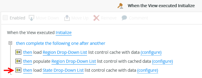 - Load [State Drop-Down List] list control (child control) cache with data