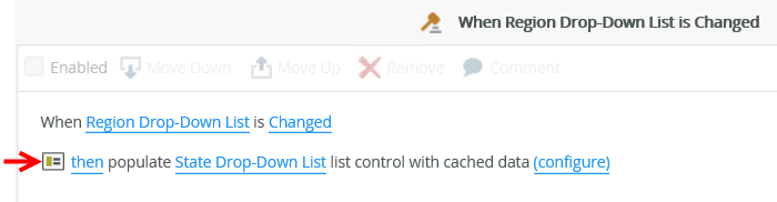 and to the When [Region Drop-Down List] is Changed rule of the parent control:
