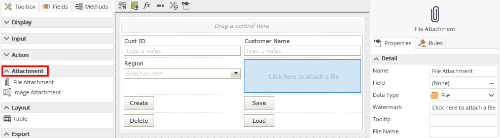 The File Attachment control allows you to upload a file in the view or form.