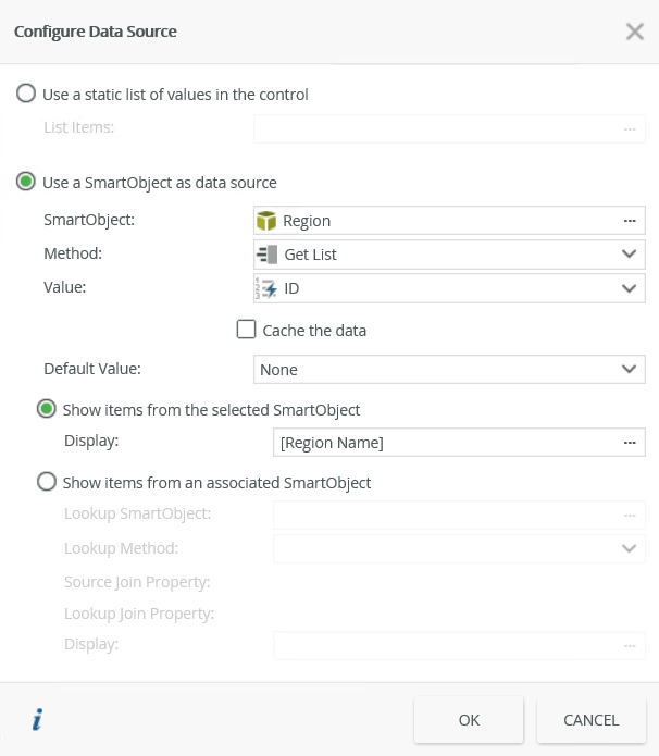 | Show items from an associated SmartObject | Select this option if you want to show items from an associated SmartObject. |
