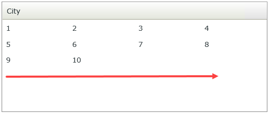 Use the Stacked by and No. of items Properties to specify the amount of rows or columns to display. When you select to stack by rows, the first row starts from left to right until the number of items per row is reached, and then a new row is created. When you stack by columns, the first column starts from top to bottom until the number of items per column is reached, and then a new column is created. You can find these properties in the Settings section:
