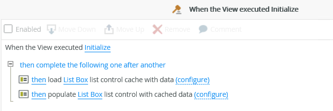 When you select the Cache the data option, the following two actions are added to the When the View executed Initialize rule event: