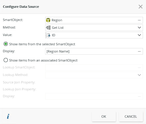 | Show items from an associated SmartObject | Select this option if you want to show items from an associated SmartObject. |