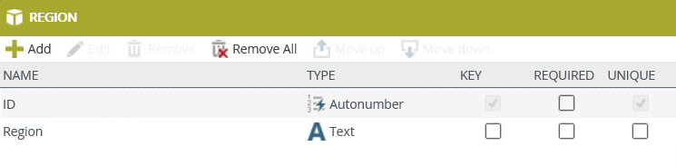 - Create an Item view called Region and drag a Drop-Down List control onto the canvas.