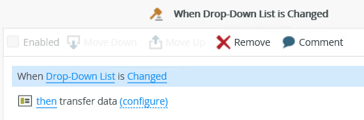 - When [control] is Changed: This event executes when the control is set to a new value that is different from the previous value. You can use this event to trigger actions when the control is changed, for example when the display item is changed, then set the properties of another control.