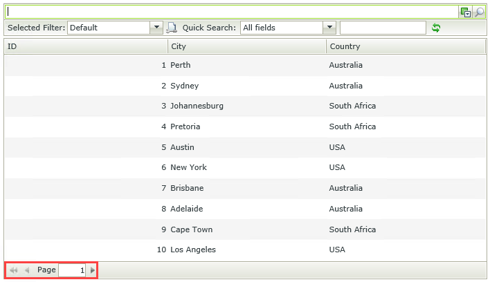 | Page Size | The number of search results to display per page in the search dialog. Type a value between 1 and 99. The property defaults to 10. | No |