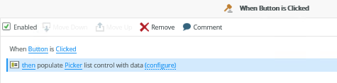 You can also use a filtered data set to populate the control by using the Populate a list control with data action with an event such as When a button is clicked, or When the View executed Initialize. This is useful to pre-populate a picker with a list of items using filters and parameters.