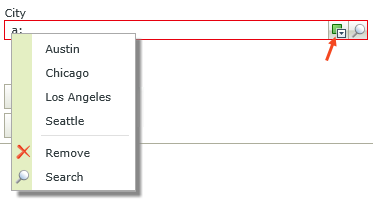 | Filter the data according to another control's value | Select this option if you want to filter the data according to another control's value. Use this for cascading controls where the value you select from a Country control filters a City control. |
