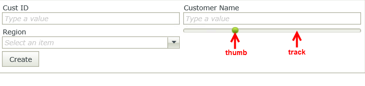 The Slider control allows you to select a numerical value by moving a thumb on a track using the mouse or Up and Down or Left and Right arrow keys.