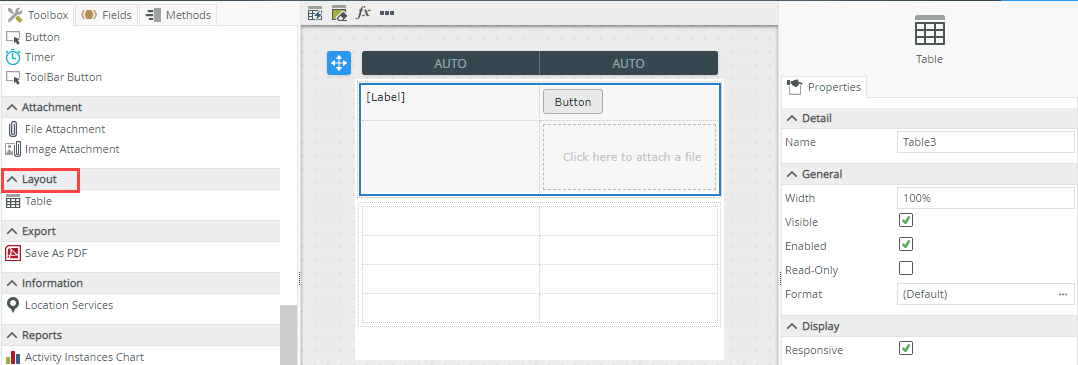 The Table control allows you to create a layout table in views and forms to help you organize other controls and apply styling to cells.