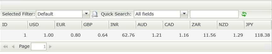 - Run the view. The example below shows a foreign currency list that updates according to the values configured in the Interval and Number of Ticks properties.