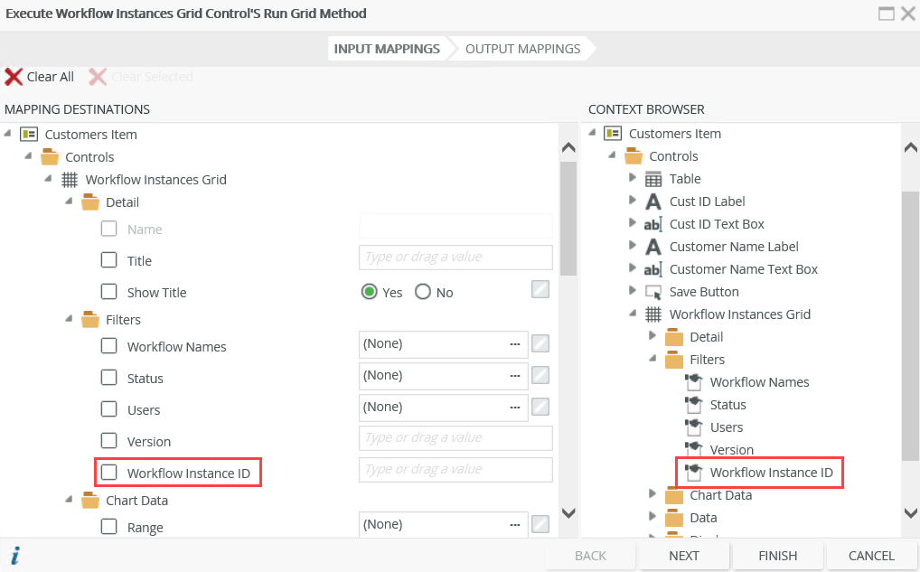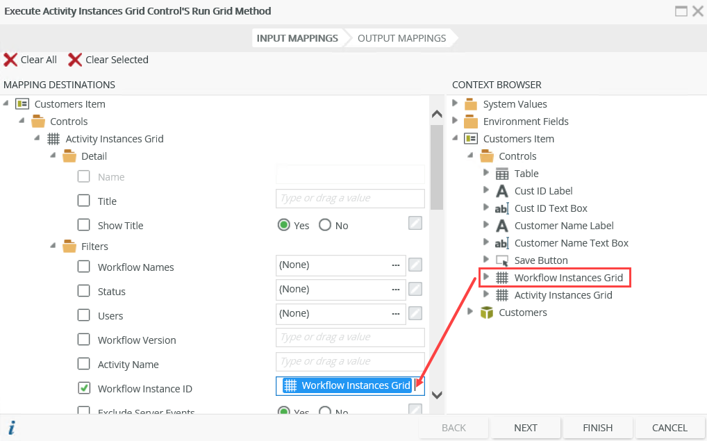 Map the Workflow Instances Grid to the Workflow Instance ID property of the Activity Instances Grid.