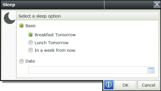 - Execute a control's Sleep method: Sleeps a worklist item. You can use this method for example to sleep a worklist item when a button is clicked. Configure the control's Serial Number and Sleep Duration parameters to do this. The Sleep Duration format is date or date/time but it must be the same format as your browser culture. Type a date or date/time, such as 01/01/2019, 2019/01/01 or 19/01/01.