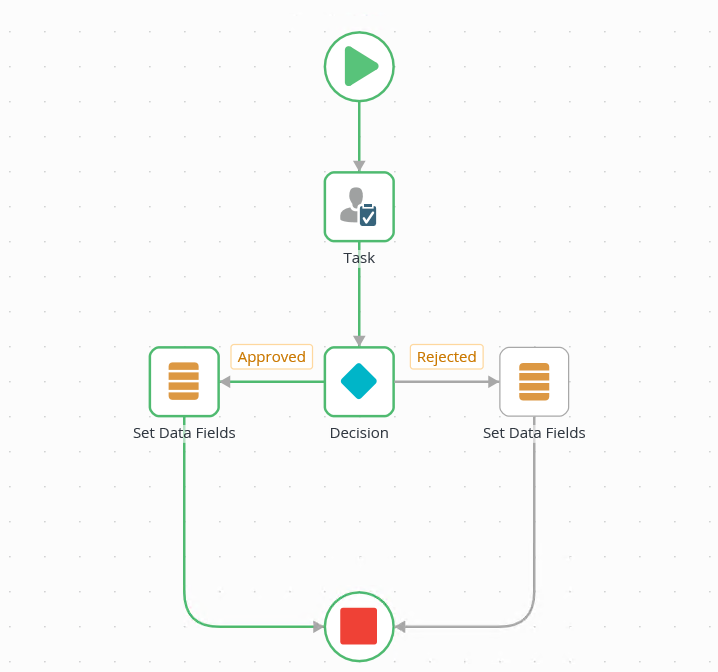 - When [control] is Actioned: This event executes when a task is actioned such as Approved or Declined. You can use this event to trigger actions when the task is actioned, for example show a message or open a subview.